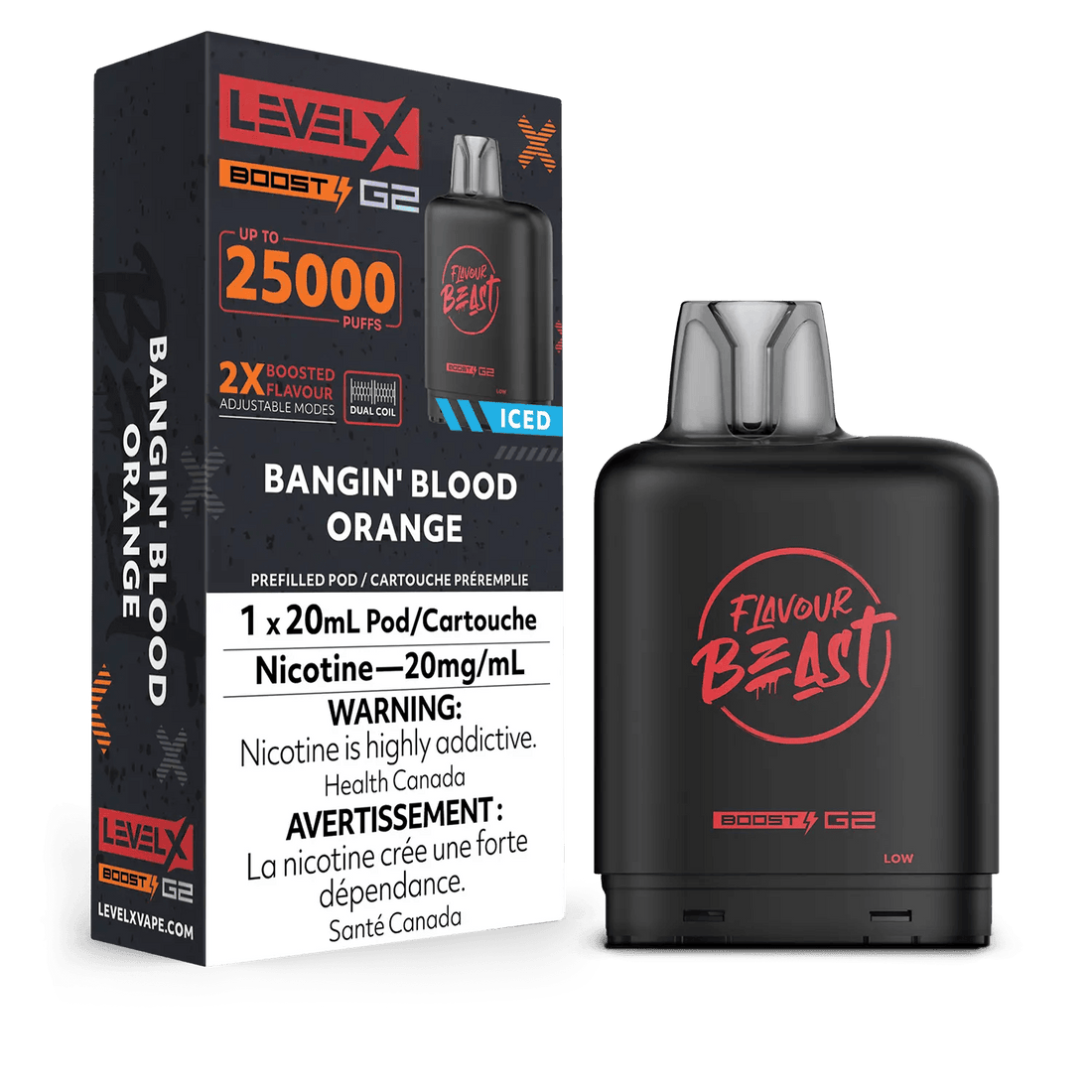 Niveau X Boost Bangin' Blood Orange Iced Pod par Flavour Beast Plongez dans le monde...