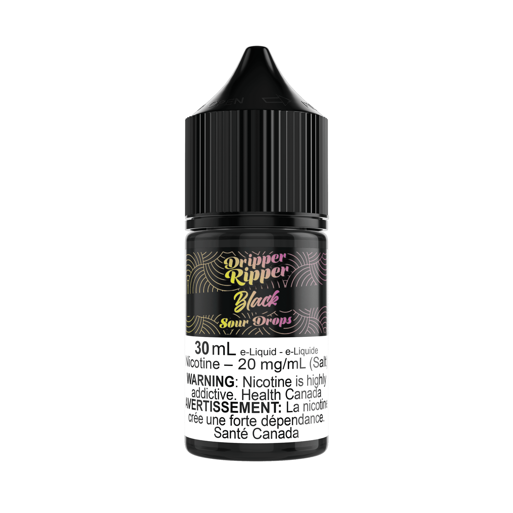 - 1x 30 ml de gouttes acidulées de nicotine salée par Dripper Ripper Black Salts