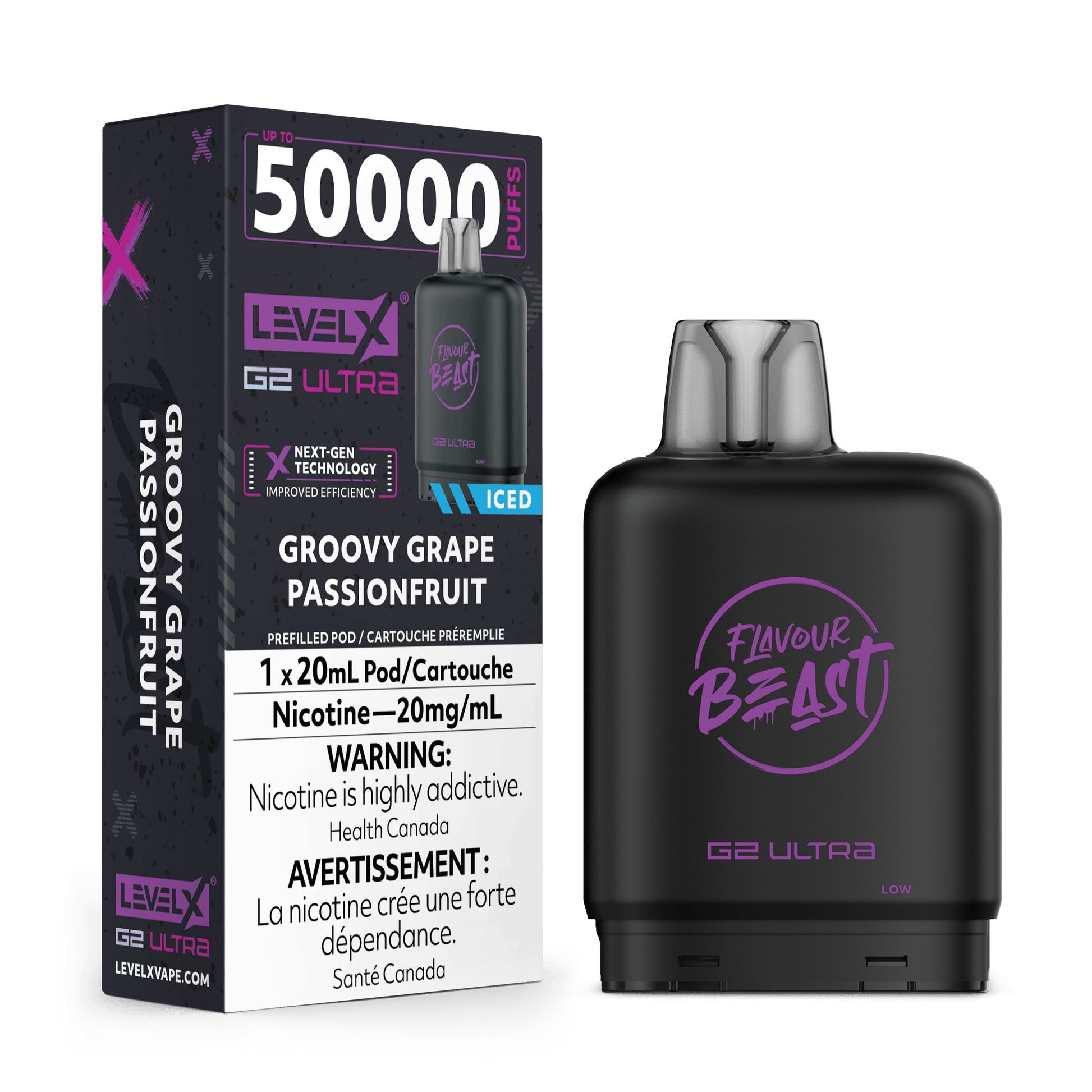 - 1x Groovy Grape Passionfruit Level X G2 Ultra Pod par Flavour Beast