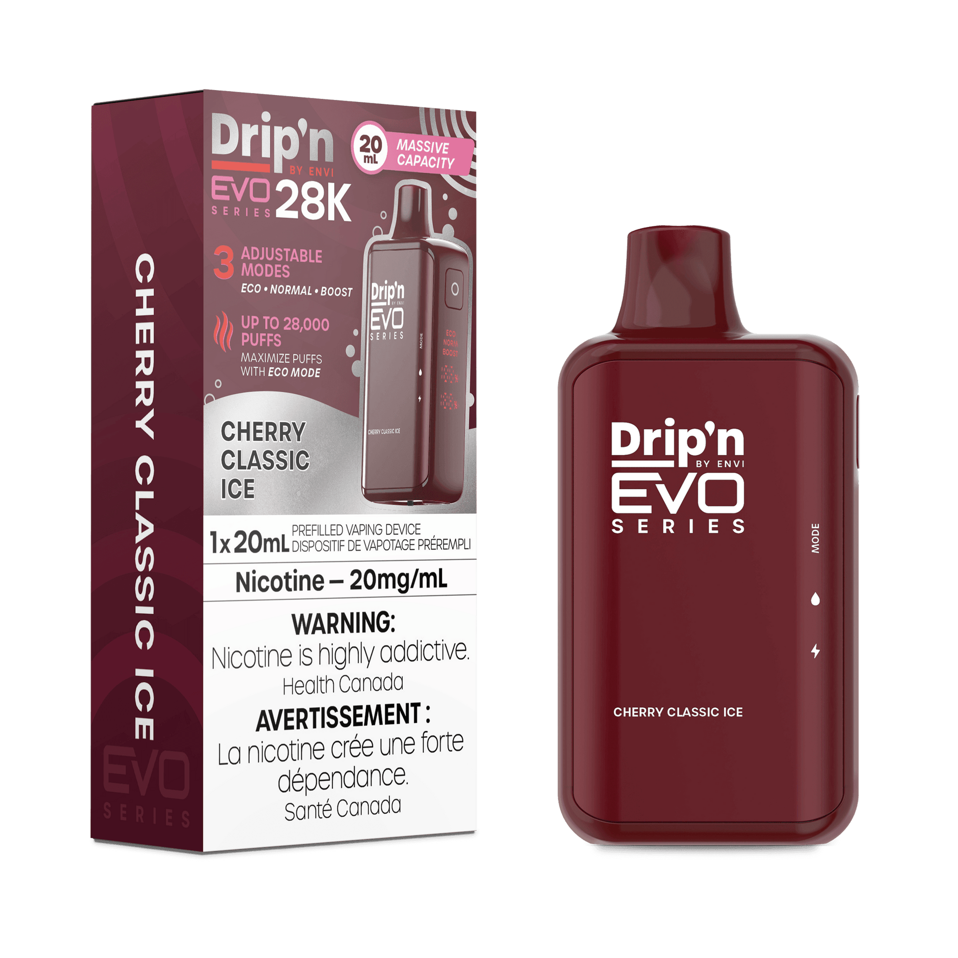 Experience the nostalgic and refreshing taste of the Cherry Classic Ice Drip'n EVO 28K Disposable Vape and elevate your vaping experience. With its perfect combination of flavour and convenience, this vape is an excellent addition to any vaping collection.