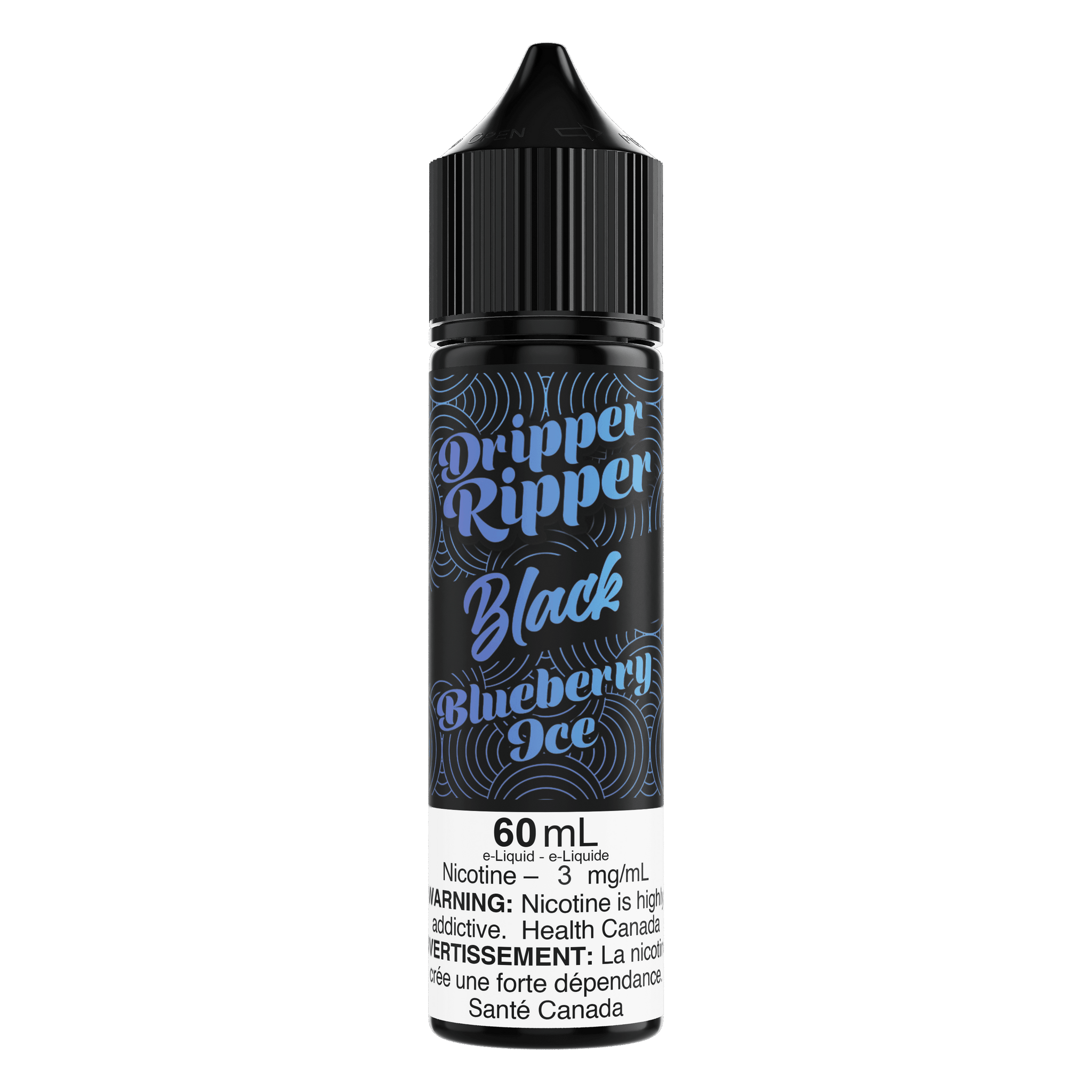 - 1x 60mL Blueberry Ice Freebase Juice by Dripper Ripper Black