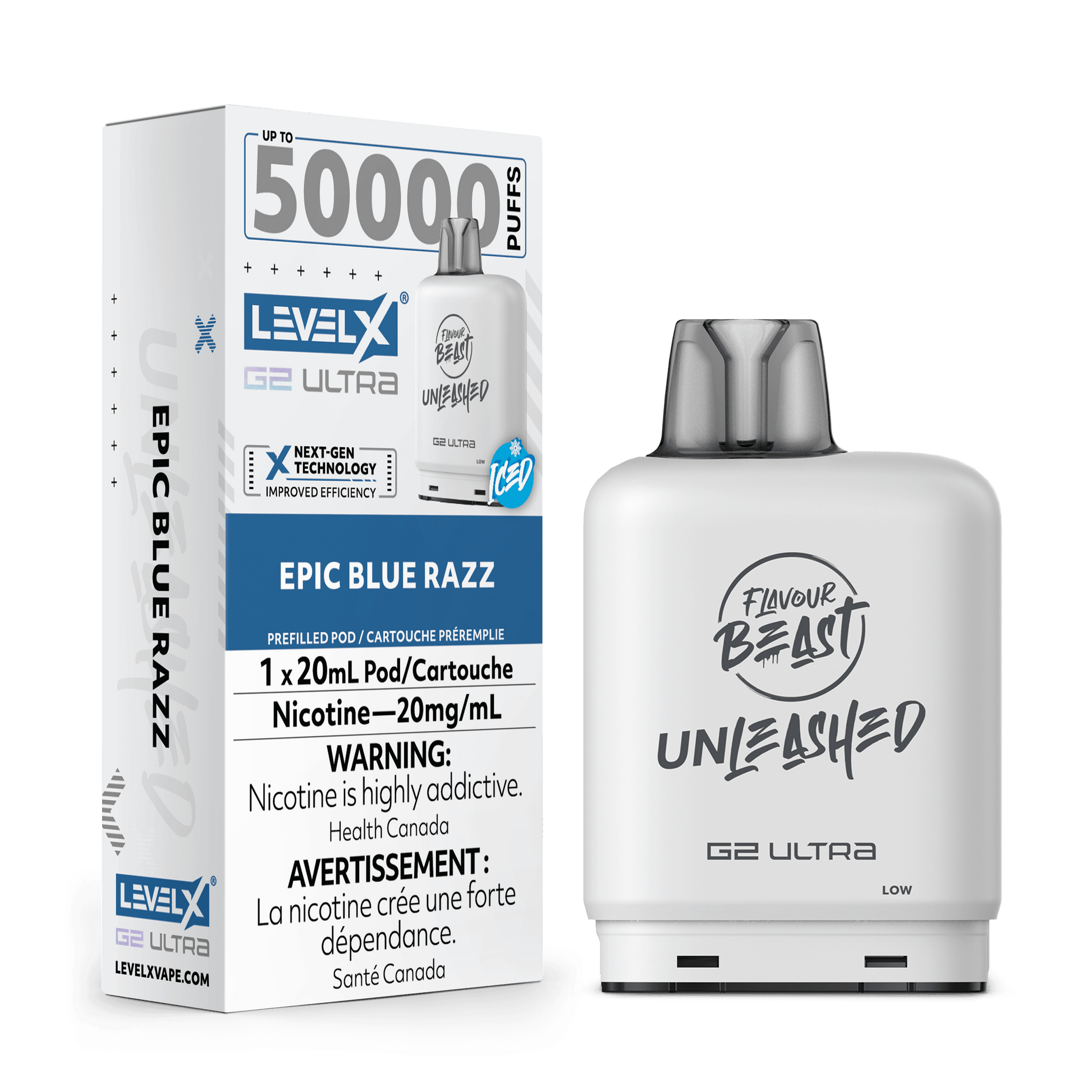 - 1x Epic Blue Razz Level X G2 Ultra Unleashed Pod by Flavour Beast