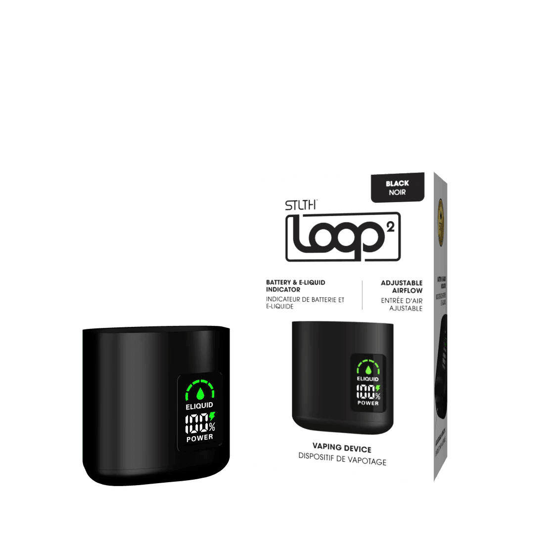 - E-Liquid Level Reading: Available with STLTH LOOP 25K Pods, STLTH LOOP 9K Pods, and STLTH SWITCH Pods